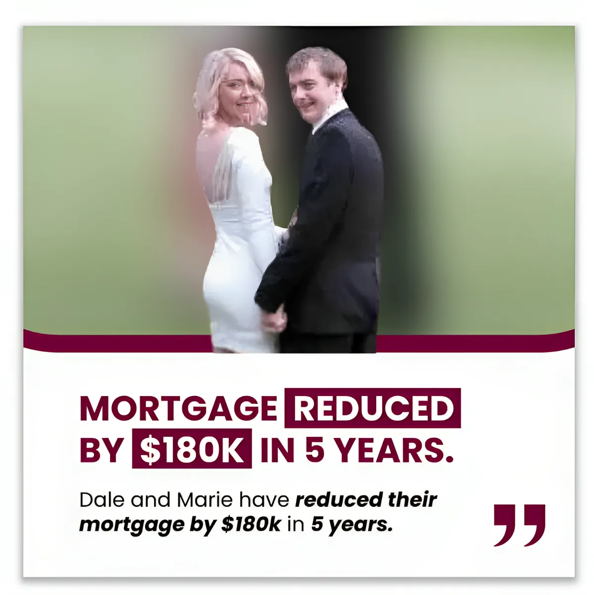 Dale and Marie have reduced their mortgage by $180k in 5 years